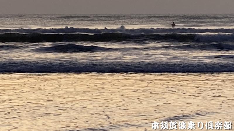 ウネリが弱くオフショアが吹いているため割れにくい波